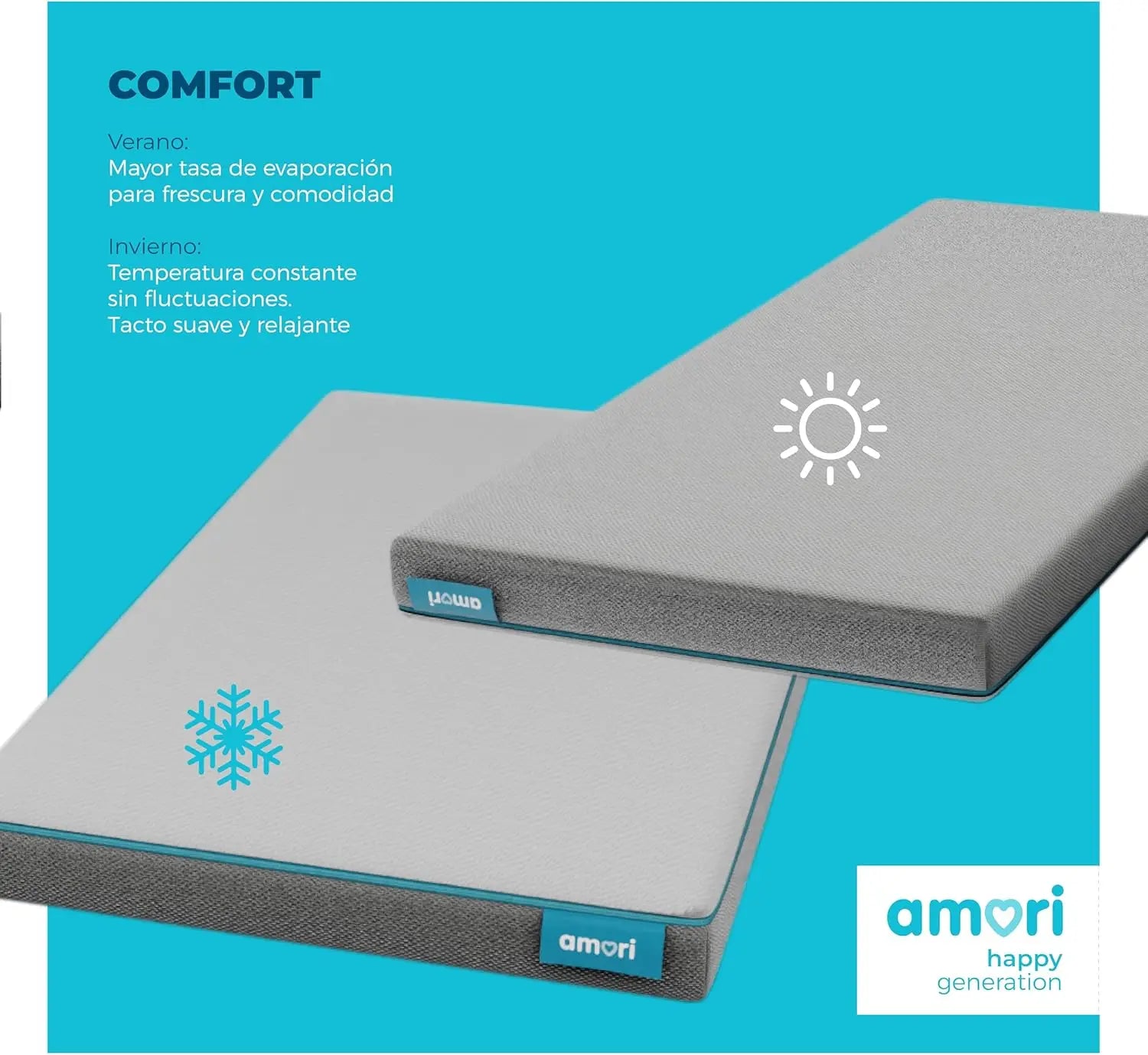 El colchón AMORI ofrece el equilibrio perfecto entre confort y seguridad para que tu bebé tenga un sueño reparador y un desarrollo saludable.