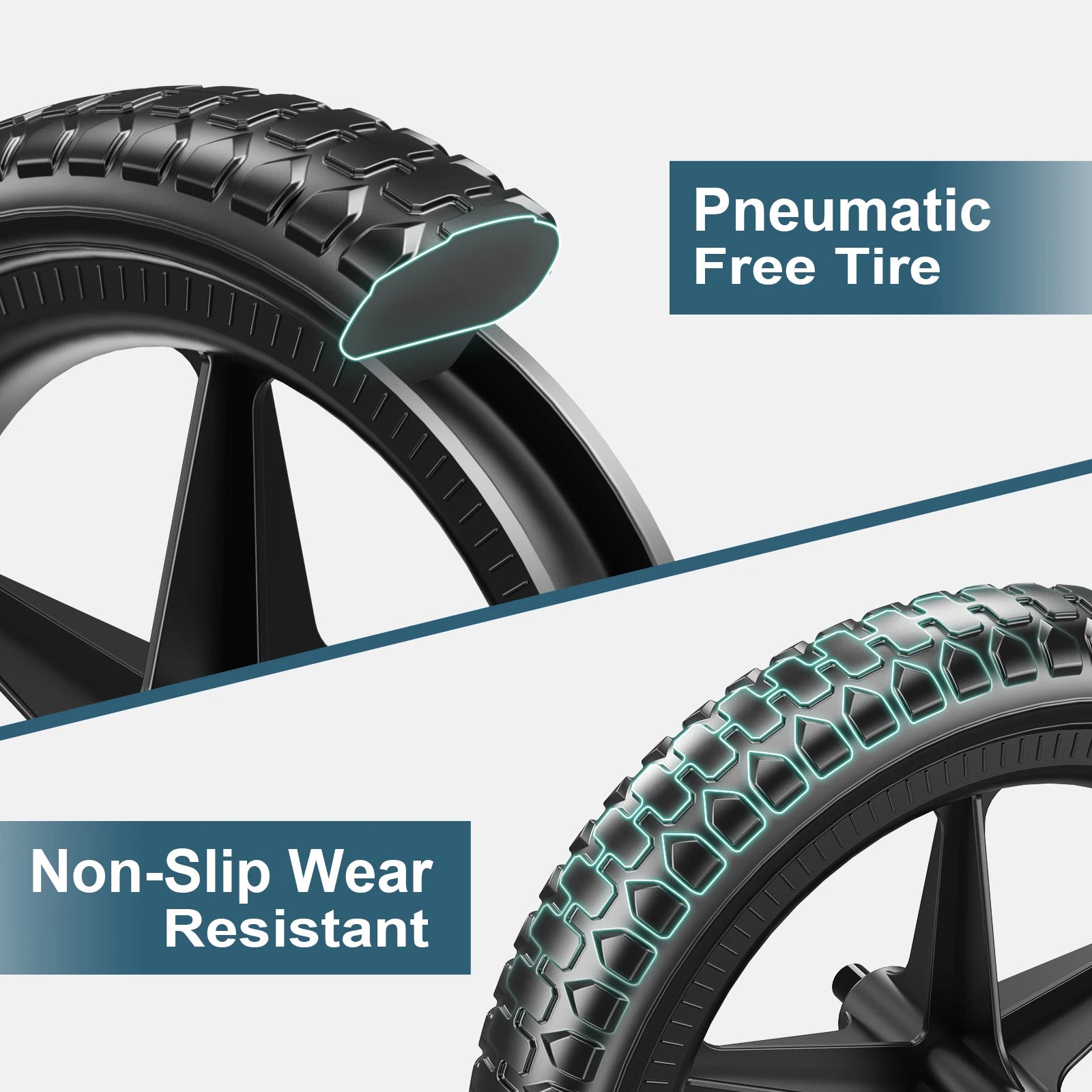 Ruedas sin aire: Neumáticos resistentes y sin mantenimiento, fabricados con material antideslizante y de alta durabilidad.